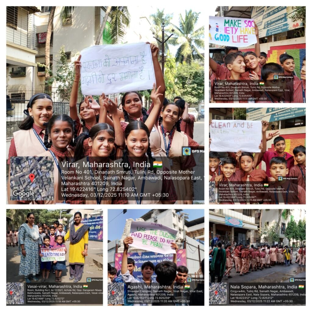 दिनांक ३ डिसेंबर २०२५ रोजी सकाळच्या 17 मध्ये विद्यार्थ्यांचे प्रभात फेरी काढली जनजागृती पर घोषणा करण्यात आल्या व जनजागृती करणारी घोषवाक्य यांचे फलक तयार करण्यात आले स्वच्छता दिनाचे विद्यार्थ्यांना महत्त्व पटवून देण्याकरता शाळा स्तरावर छोटासा कार्यक्रम घेण्यात आला या कार्यक्रमांमध्ये स्वच्छता दिनाचे महत्त्व विद्यार्थ्यांना शिक्षकांनी समजावाले व त्या कार्यक्रमांतर्गत स्वच्छता अभियानावर वेगवेगळ्या प्रकारची घोषवाक्य तयार करून घेण्यात आली शाळेमध्ये सफाई काम अभियान चालवण्यात आले