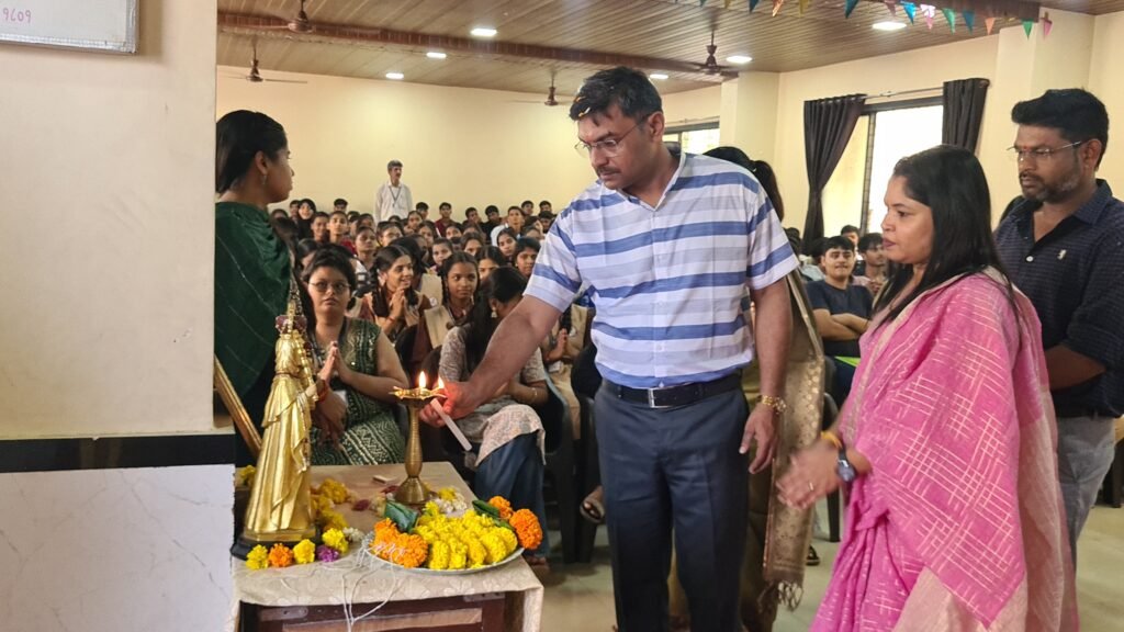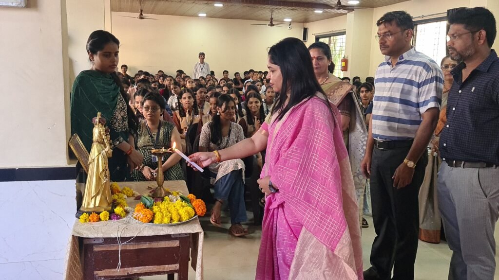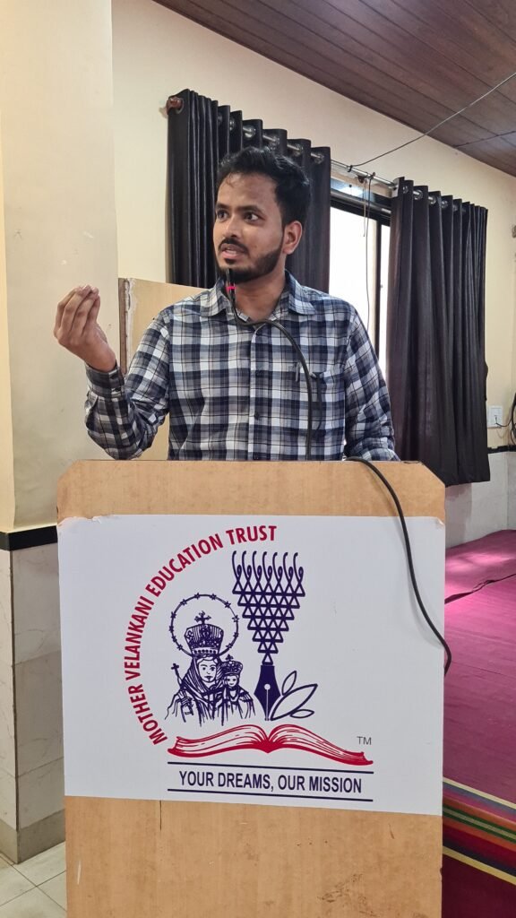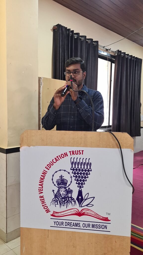 The program commenced with an introduction to the Mother Velankanni Education Trust, detailing its various educational institutions and its continued dedication to empowering students through quality education. This was followed by the ceremonial lighting of the lamp, symbolizing the beginning of a meaningful journey toward knowledge. A welcome song and a graceful welcome dance, performed by the students, added a cultural touch and created a warm and vibrant atmosphere. All guests were felicitated as a gesture of gratitude and respect by the organizing team.