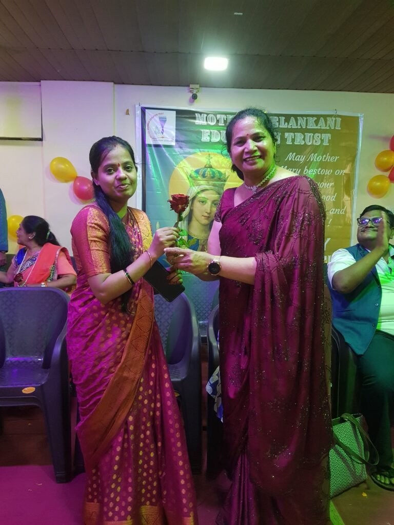 The program commenced with the lighting of the ceremonial lamp, symbolizing the divine presence and purity of Mother Velankani. The Principal addressed the gathering, highlighting the significance of the feast and encouraging everyone to follow the values of compassion, humility, and service that Mother Velankani embodies.
