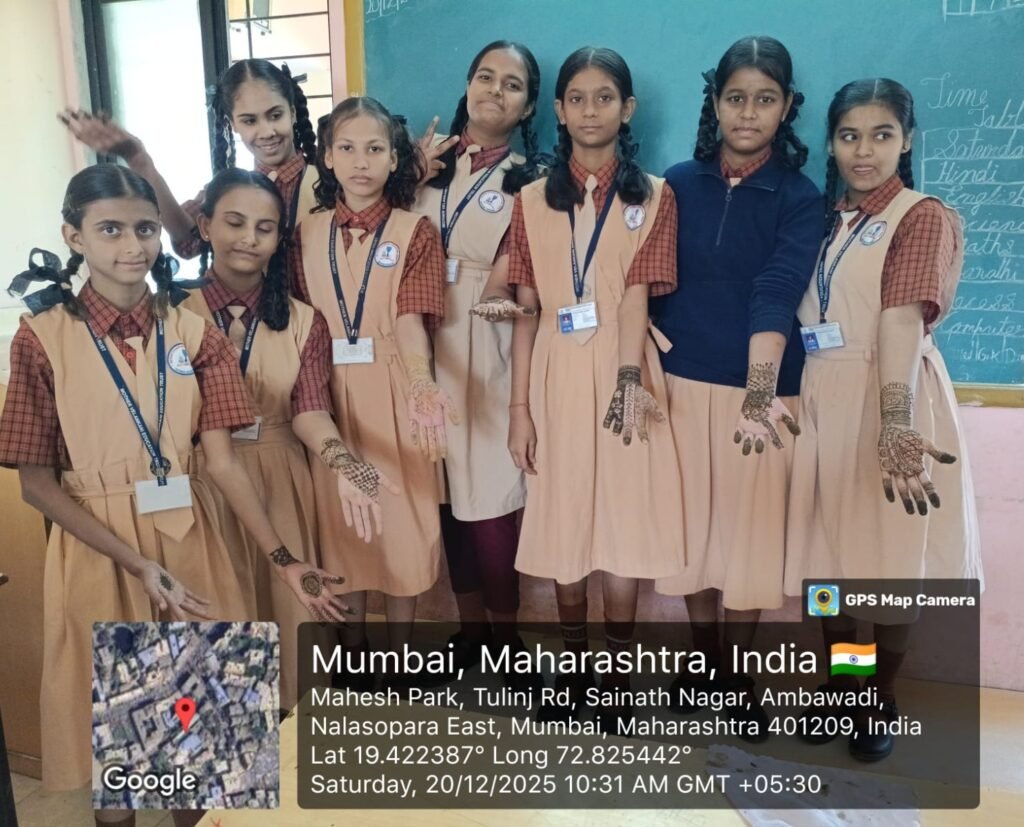 To celebrate the festive spirit and promote creativity among students, the school successfully organized Holly Making Activity and Mehndi Competition for students from Std. 1st to 9th on 20th December 2025. Both activities were conducted with great enthusiasm and active participation from students.