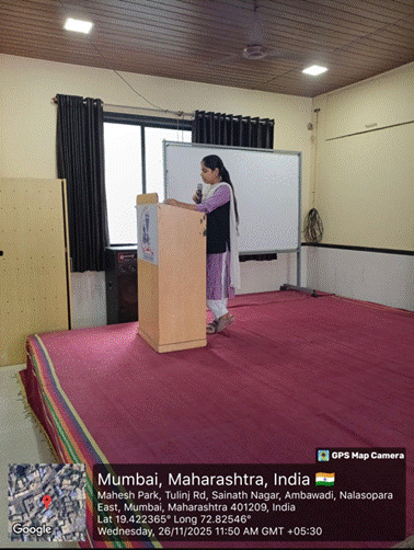 A thought-provoking speech was delivered by Shriya Miss, focusing on the significance of the Constitution in maintaining democratic values in India. She emphasized how the Constitution protects the rights of citizens, maintains national unity, and provides a framework for governance. Her speech inspired the students to understand their duties as responsible citizens.