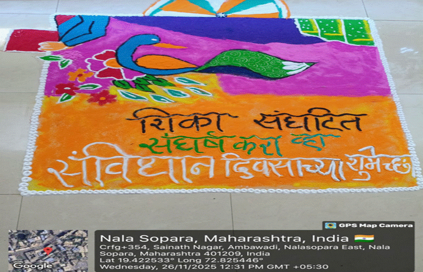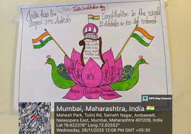 Bharti Miss and Helena Miss captured memorable moments of the celebration, including photographs of the Constitution (Savindhan) book and a portrait of Dr. B. R. Ambedkar. The photographs will serve as a valuable record of this meaningful event.