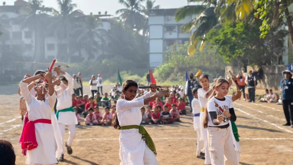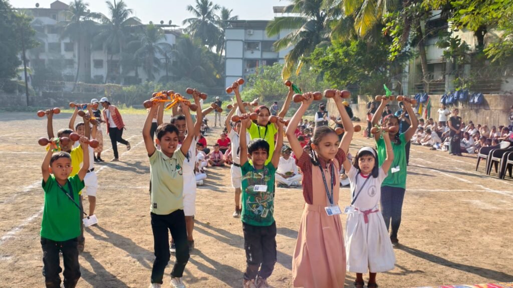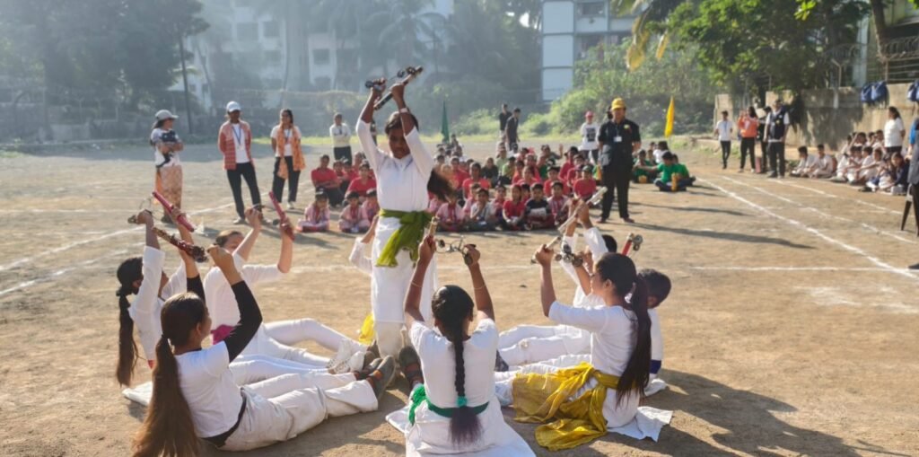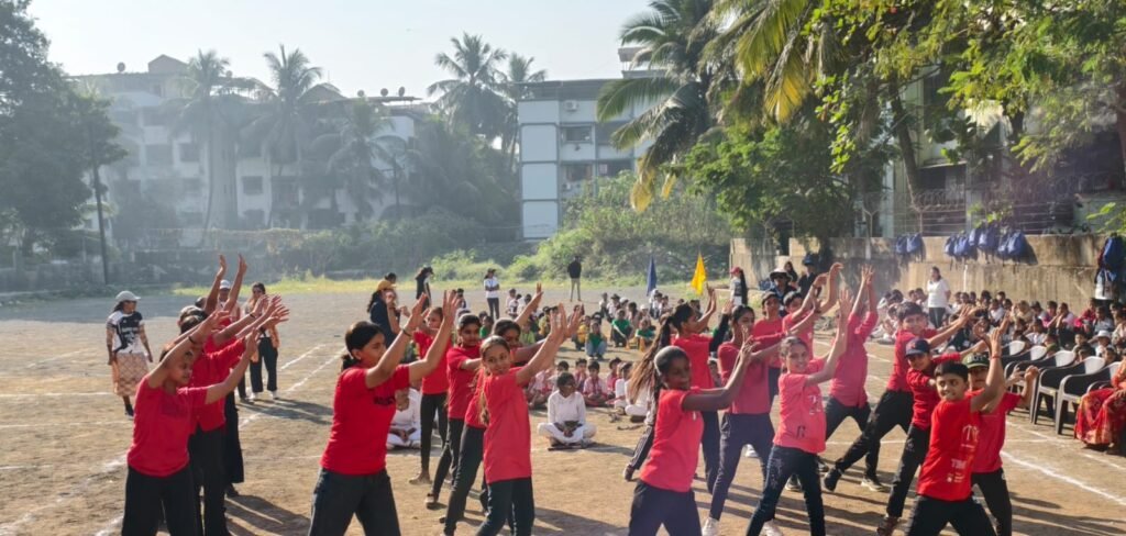 The dignitaries were then felicitated, after which a series of cultural sports performances took place. Students of Std. 6 to 8 performed a vibrant Lazim Dance, followed by an energetic Zumba performance by Std. 5. The charming Pom Pom Dance by students of Std. 1 to 4 added colour to the event, and students of Std. 6 to 8 showcased rhythm and coordination through the Dumbbell Dance. The Mass Drill, performed by all students, displayed unity, discipline, and teamwork.
