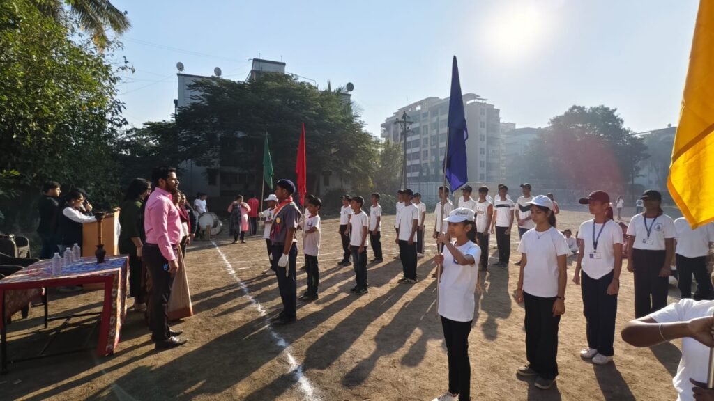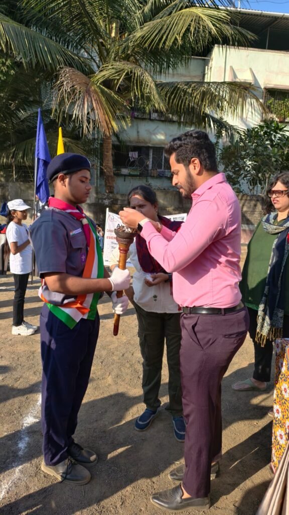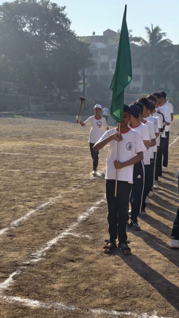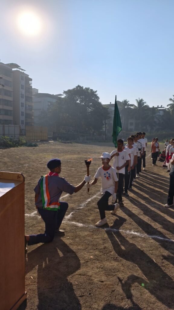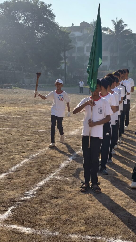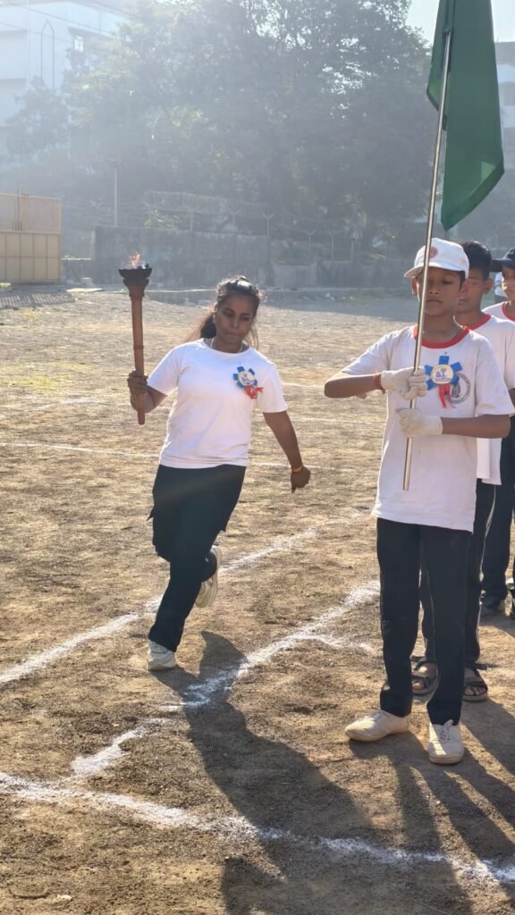 The ceremony officially commenced with the Flag Hoisting, after which the Torch (Mashal) was lit, symbolizing the spirit of courage, determination, and sportsmanship. Vivek from Std. 8 proudly administered the Sports Oath, reaffirming the students’ commitment to fair play.